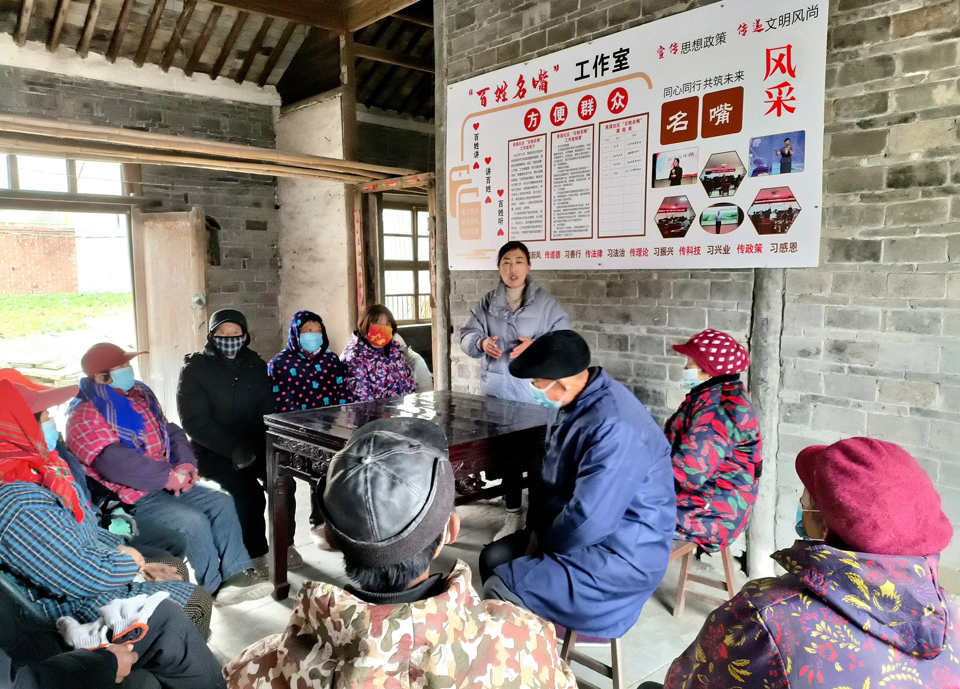 2022年,张桥镇以“红色网格”为载体,建好阵地、选优队伍,特别是利用“百姓名嘴”工作室这一基层宣讲平台,将党的二十大精神送入寻常百姓家。在焦荡社区,十多名村民代表围坐在木椅上,倾听着“百姓名嘴”蒋萍宣讲,现场不时响起热烈的掌声。