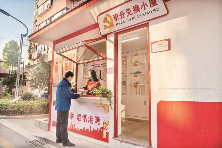 姜堰区罗塘街道古田社区积分兑换小屋。
