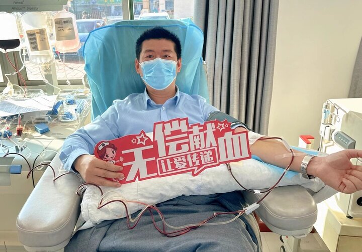姚炜平正在献血。